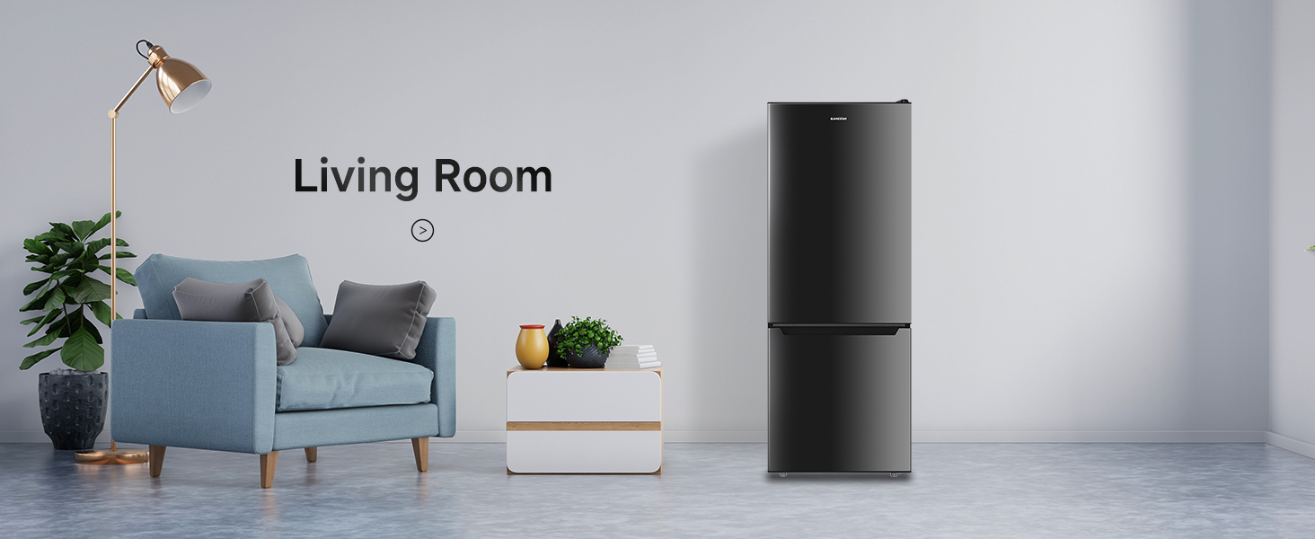 This apartment fridge with bottom freezer, 21.3" W x 20.7" D x 56"H, With a bottom freezer capacity of 1.65 Cu.Ft and a refrigerated section capacity of 5.45 Cu.Ft. This aprtment refrigerator is designed to optimize space while providing ample room for storing your favorite food and beverages.It is ideal for apartments,bedroom,office,and kitchen.